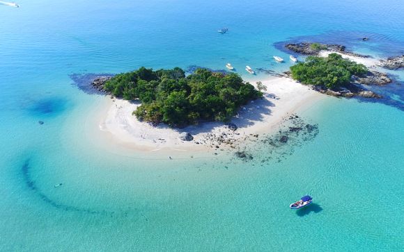 Discover the turquoise waters and lush islands of Angra dos Reis on a full-day cruise, combining relaxation, swimming, and scenic exploration.
