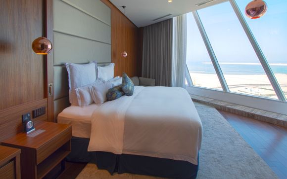 At the Wyndham Grand Manama 5*, you will be immersed in the heart of the Kingdom of Bahrain. This architectural gem offers panoramic views through its expansive windows, overlooking the rooftops of Manama and the Persian Gulf. The hotel's refined design and exceptional setting create an atmosphere of elegance and charm, inviting guests to relax and take in the breathtaking surroundings.