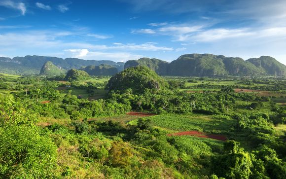 You will continue with a walk through the Viñales Valley National Park, declared a Cultural Landscape protected by UNESCO and a National Natural Monument, which stands out for the beauty of its mogotes - mountains with rounded peaks - and numerous caves.