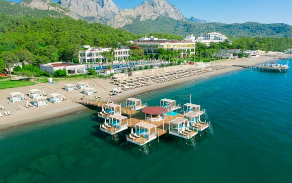 You will be spoilt for choice with the 10 restaurants, children buffet and ice cream shop on offer. Treat yourself to a lovely breakfast, lunch or dinner at the main restaurant or try authentic Turkish cuisine at the Turquoise A'la Carte Restaurant. Here are some of the cuisine styles you will find on your holiday: Italian Cuisine, Fish Cuisine, Asian and Far East Cuisine. On a warm and sunny day, cool off with a delicious scoop of organic ice cream from the Scoop Ice Cream Shop or try a refreshing cocktail or glass of wine from one of the 9 bars on the hotel grounds.